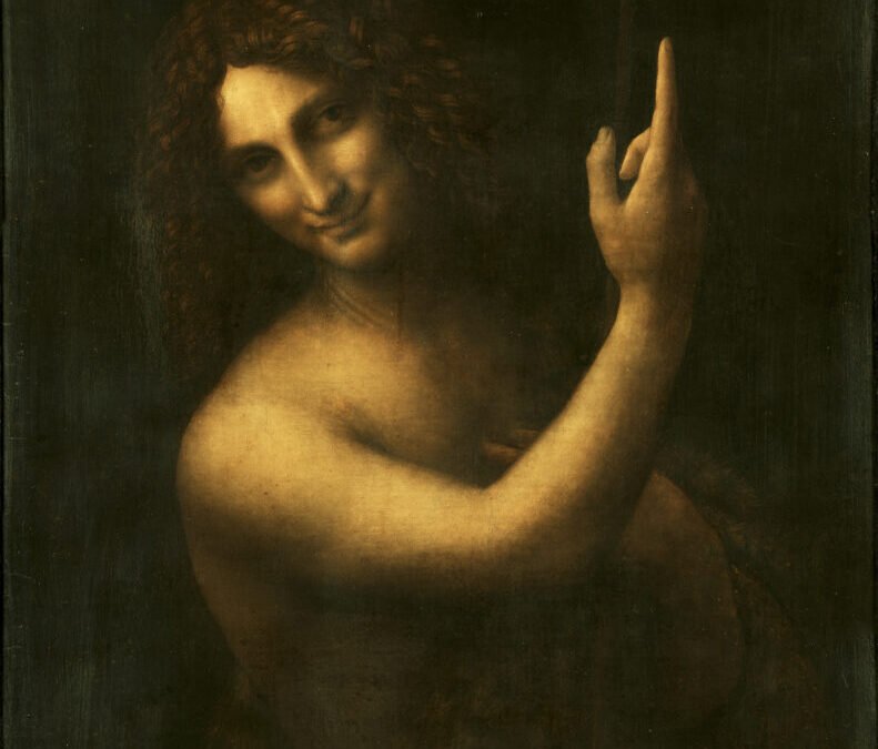 También en el Museo del Louvre, esta pintura muestra a San Juan Bautista emergiendo de un fondo oscuro, con una expresión ambigua y un gesto que apunta hacia arriba.